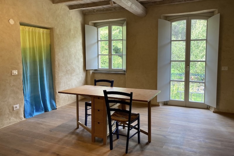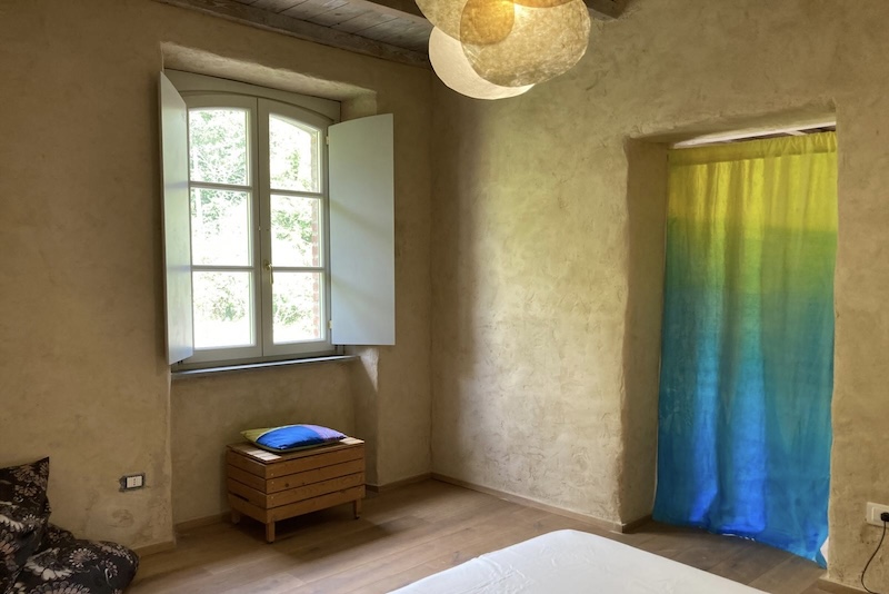 In una casa di un piccolo borgo nelle montagne della Lunigiana, intonaci fatti in autocostruzione con la terra scavata direttamente in loco per una ristrutturazione super ecologica.